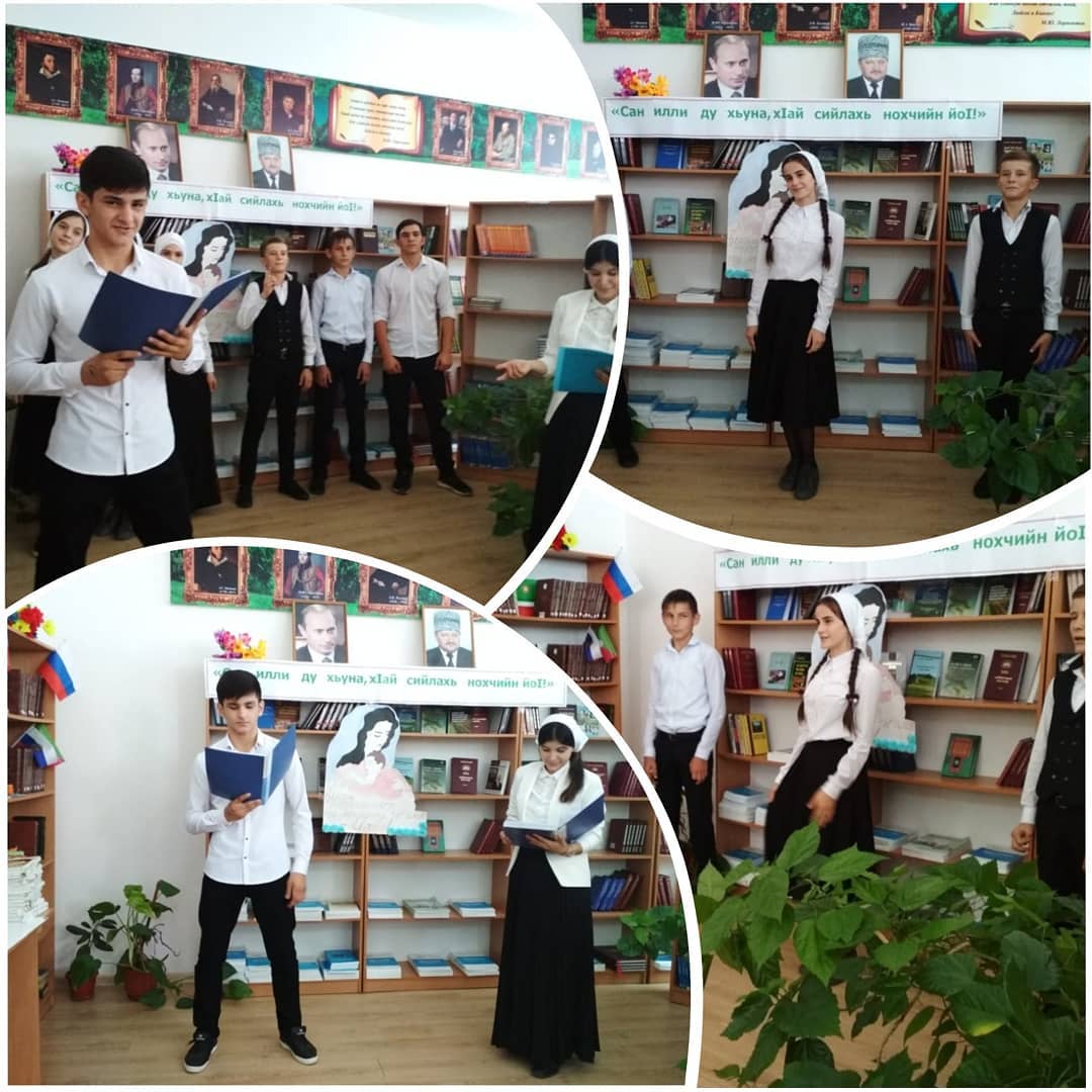 В библиотеке, организатором детского творчества Шахидовой М. А., был проведен конкурс чтецов, посвященный Дню чеченской женщины. В конкурсе приняли участие учащиеся 5-9-х классов.