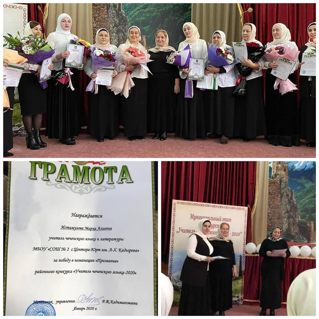 24.01.2020Сегодня, 24 января состоялась церемония награждения победителей и призеров муниципального этапа конкурса "Учитель чеченского языка-2020". В церемонии приняла участие начальник Управления образования Грозненского муниципального района Кадимагомаева Р.Ж.. Роза Жунидовна поздравила всех присутствующих, пожелала им здоровья, творческих успехов. В своей речи она отметила, что Глава Республики Рамзан Ахматович отводит особую роль вопросам сохранения родного языка. В нашей республике созданы все условия для популяризации родной речи и наша задача не только обучать детей, но и прививать любовь и уважение к родному языку. В этом конкурсе приняла участие учитель чеченского языка и чеченской литературы МБОУ " СОШ/2 с.Центора- Юрт" им. А- Х. Кадырова Истамулова М.А., которая стала победительницей в номинации " Призвание". Все участники и победители конкурса награждены грамотами и ценными подарками.Дала т1аьхье беркате йойла! 💐💐