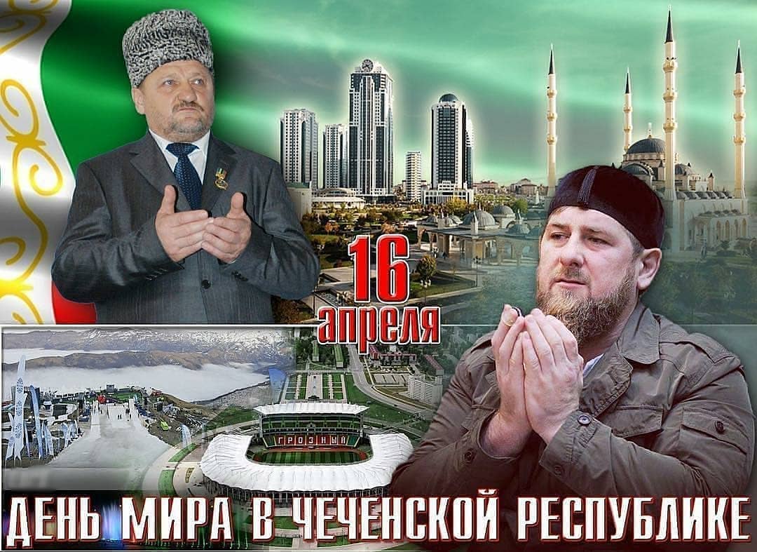 16.04.2020Уважаемый РАМЗАН АХМАТОВИЧ!От всей души поздравляю Вас с Днём мира!Отмена режима контртеррористической операции стала событием, официально закрывшим летопись периода военно-политических катаклизмов. Этому предшествовали годы тяжелого труда по налаживанию мирной жизни. На момент принятия решения совместными усилиями федеральных и республиканских силовых и правоохранительных структур на территории республики был сломан хребет бандподполья, уничтожены его главари, обеспечено главенство закона. Чеченская Республика стала одним из самых стабильных и безопасных субъектов Российской Федерации. В этот день мы вспоминаем ПЕРВОГО ПРЕЗИДЕНТА ЧЕЧЕНСКОЙ РЕСПУБЛИКИ, ГЕРОЯ РОССИИ АХМАТ-ХАДЖИ КАДЫРОВА и тысячи последовавших за ним людей, ценой собственной жизни победивших терроризм.Сегодня Вы в наилучшем виде воплощаете в жизнь мечты и заветы ПЕРВОГО ПРЕЗИДЕНТА ЧЕЧЕНСКОЙ РЕСПУБЛИКИ, ГЕРОЯ РОССИИ АХМАТ-ХАДЖИ КАДЫРОВА. Продолжая дело своего отца, Вы прилагаете огромные усилия для интенсивного развития региона: воссоздана инфраструктура городов и сел, отстроены объекты социального назначения, промышленности, транспорта и связи, республика стала привлекательной для инвесторов.От всей души желаю Вам мира, благополучия и дальнейших успехов в строительстве светлого будущего для всех, кто живет в Чеченской Республике!ДАЛА ДЕКЪАЛВОЙЛА ХЬО!