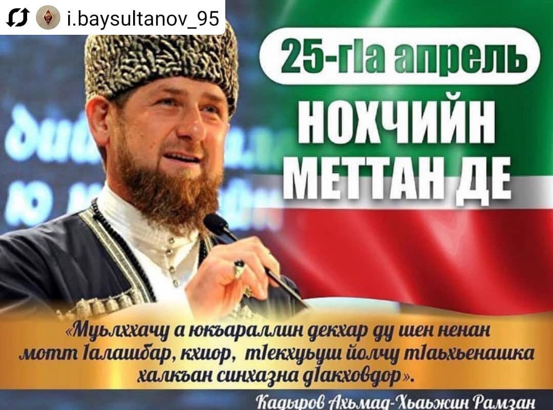 25.04.2020Ассаламу ӏалайкум.Лараме Ахьмад-Хьаьжин Рамзан! Хьомсара махкахой!Нохчийн Республикин дешаран а, Iилманан а министерствон белхалойн цIарах а, сайн цIарах а, аса даггара декъалдо шу Нохчийн меттан денца!Вайна ма-хаъара хIора а шарахь, оханан беттан 25-чу дийнахь, даздеш ду Нохчийн меттан Де. И даздаран а, цуьнан сий дар а коьрта ӏалашо ю вайн тӏекхуьучу кегийрхойн ненан матте болу безам кхиор а, царна маттаца доьзна долу гIиллакхаш довзийтар а.Нохчийн меттан Де билгалдаьккхина шен омраца 2007-чу шарахь Нохчийн Республикин Куьйгалхочо, Россин Турпалхочо Кадыров Ахьмад-Хьаьжин Рамзана @za_kadyrova_95engИштта лаккхара терго яра бахьана долуш, вайн махкахь мотт кхиорехь хIора дийнахь боккха болх бу дIахьош. Тахана вайн школашкахь, берийн бошмашкахь къаьсттина тидаме лаьцна ду ненан маттаца долу берийн гергарло чIагIдар.Нохчийн Республикин Дуьхьарлерчу Паччахьо, Россин Турпалхочо Кадыров Ахьмад-Хьаьжас (ДАЛА гIазот къобал дойла цуьнан!), меттан хьокъехь аьлла дешнаш: «Мотт ца хилча - къам дац!». Оцу дешнаша вайн Даймехкан машаре новкъахь сийлахь меттиг дIа а лаьцна, ненан маттаца бен къоман тIаьхье ца хилар хаийтира.Иштта тахана дIахьош бу вайн мехкан говзанчаша, Iилманчаша, яздархоша хьехархоша мотт кхиорехь жигара болх. Вайн декхар ду тIекхуьуш болчу кегирхошна ненан маттаца доьзна долу оьзда гIиллакхаш довзуьйтуш, мотт безар а, ларар а, Iалашбар а гойтуш, церан уьйьр чIагIъеш къахьегар.Дала декъала дойла вай хIокху дезачу денца!Дала тIаьхье беркате йойла!
