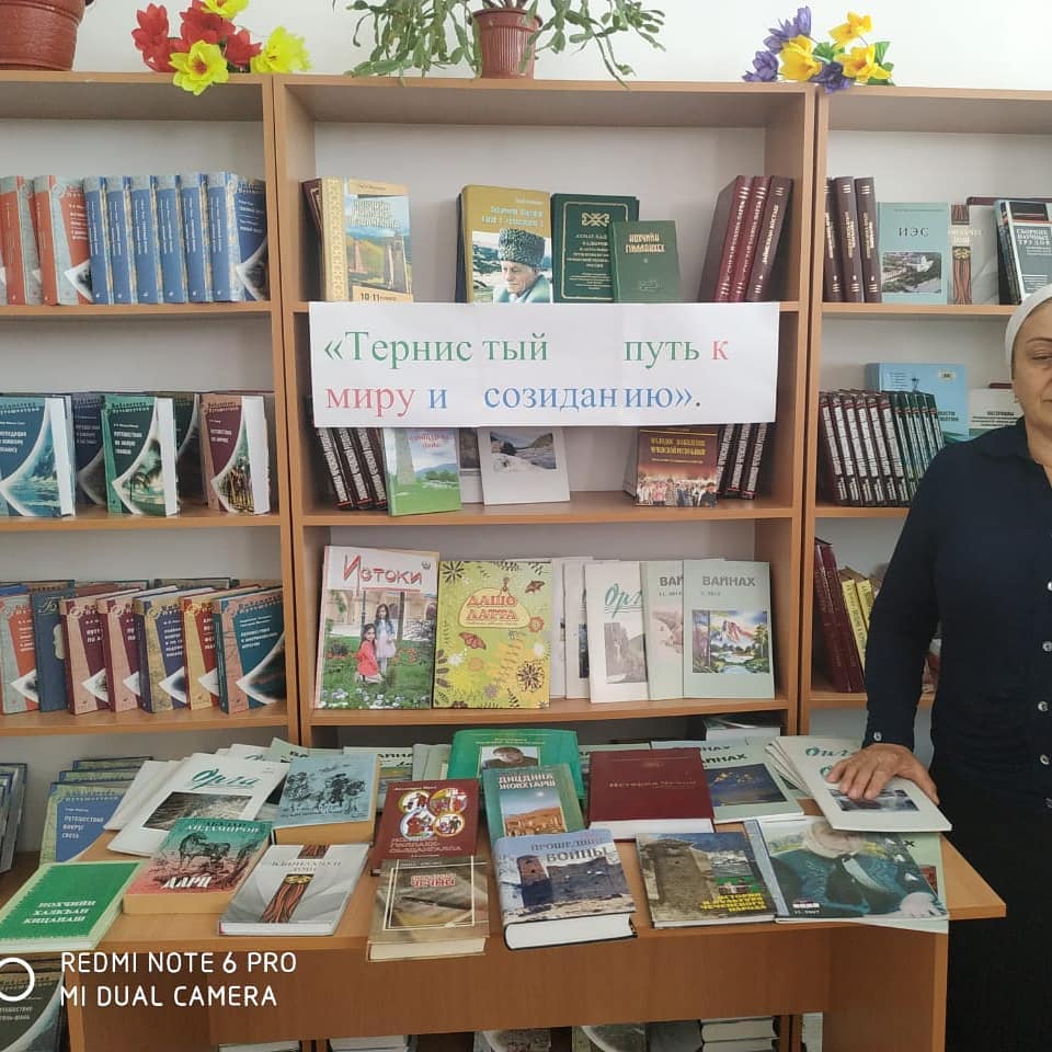 Выставка книг в библиотеке, посвященная Дню единения и согласия чеченского народа.
