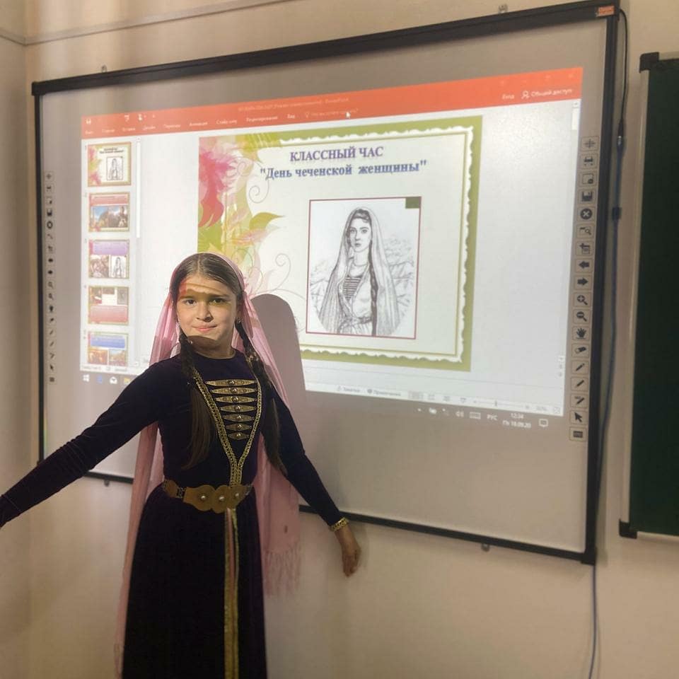 В 5"Б"классе прошёл классный час, посвященный Дню чеченской женщины. Классный руководитель Байсалова Т.Ю.