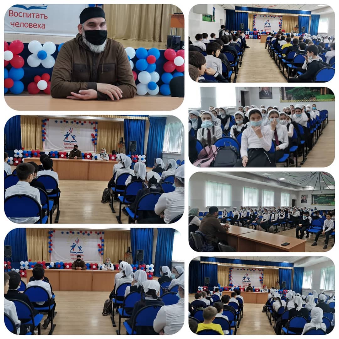 26.11.202026.11. 2020 года в рамках реализации Единой Концепции духовно-нравственного воспитания и развития подрастающего поколения ЧР, педагог по ДНВ Луаев А.Ш. совместно с зам.директора по ВР Симоновой Т. А. провели беседу с учащимися 5-8 классов МБОУ "СОШ/2 с.Центора-Юрт " им. А-Х. Кадырова. Онирассказали ребятам о величии Ислама, как религии мира, добра благополучия и созидания.Здесь же они привели разные хадисы, отметив, что мусульмане должны быть искренними, богобоязненными, милосердными, любить и уважать родителей, преподавателей, с ранних лет познавать светские и религиозные науки.Луаев А.Ш. также привел истории из жизни нашего любимого Пророка Мухаммада (мир Ему).Не осталась в стороне и тема эпидемиологического состояния в мире и республике. Они призвали собравшихся быть внимательными к требованиям экспертов Роспотребнадзора, соблюдать гигиену, масочный режим и беречь своё здоровье.