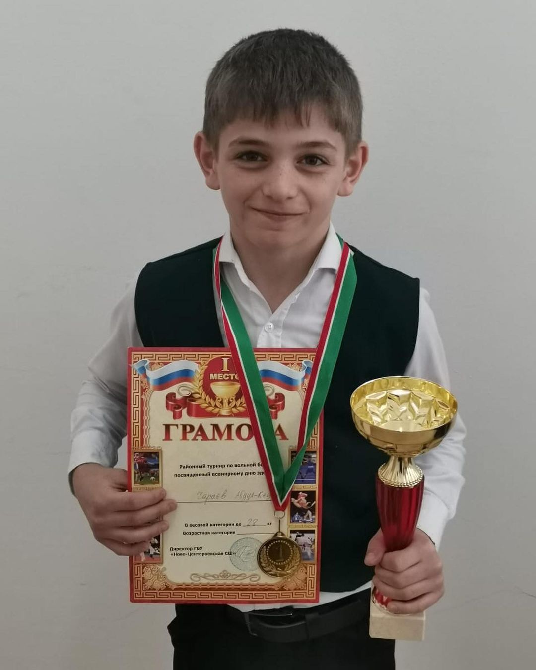 Ученик 5 «б» класса Чараев Абдул- Кедир , занял первое место в районном турнире по вольной борьбе , посвященному «Всемирному дню здоровья». Дала т1аьхье беркате йойла! Молодец!