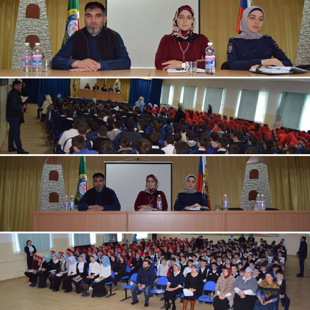 27.01.201726 января 2017 года в МБОУ СОШ 2 с. Центора -юрт Грозненского муниципального района педагогом ДНВ и Р Луаев А.Ш. совместно с кадием района Гадаевым А.Б., представителем администрации Грозненского муниципального района Абдулазиевым А. Ш., старшим инспектором ОПДН ОМВД РФ по Грозненскому району, майором полиции Эльмурзаевым А. М., инспектором ОПДН ОМВД РФ, старшим лейтенантом полиции Таймусхановой З. А. провел профилактическую беседу с учащимися 5-11 классов о духовном и нравственном развитии подрастающего поколения. В своей беседе они объяснили значение слова 'Джихад'. Отметили, что распространяя истинную религию добра и мира, Шейхи -Устазы призывали поклоняться Единному Аллаху и следовать всем канонам ислама.
