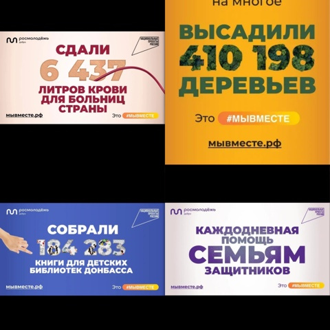 18.11.2022«Твори добро на всей Земле» #МЫВМЕСТЕ — общероссийский проект помощи гражданам во время кризисных ситуаций. В проекте на данный момент состоит около 120 тысяч неравнодушных людей, готовых ежедневно прийти на помощь. В чём суть проекта? Помощь беженцам, приезжающим с юго-востока Украины, пожилым и маломобильным людям, медикам, сотрудникам социальных служб и другим людям, нуждающимся в поддержке. В рамках проекта #МЫВМЕСТЕ организованы сбор и распределение гуманитарной помощи беженцам из ЛНР и ДНР, формируются волонтерские штабы. Добровольцы оказывают помощь нуждающимся в пунктах временного размещения, помогают в качестве педагогов и аниматоров для детей. За последнее время в обществе сформировалась культура добрых дел, что не может не радовать. Только во время пандемии сто двадцать тысяч волонтёров доставляли товары первой необходимости (продукты и лекарства), оказывали психологическую, медицинскую и юридическую помощь, помогали медицинскому персоналу более чем в трёхстах больницах.