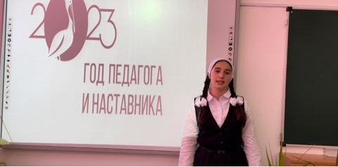 В рамках плана мероприятий, посвящённых Году педагога и наставника, Зайналабдиева Мата Рахмановна , ученица 6 Б класса МБОУ «СОШ №2 с.Центора-Юрт, поздравила учителей школы с наступающим Днем знаний.