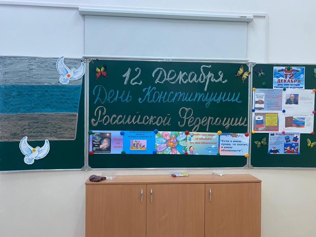 08.12.2023С 4 по 11.12.2023г были проведены классные часы и беседы по темам: «День Конституции РФ», «Конституция-основной закон государства», «Что я знаю о Конституции РФ?». Классные часы и уроки были проведены в форме бесед, диспутов, дискуссий, круглых столов и интерактивных занятий. Ребята посмотрели небольшой видеоматериал, где было рассказано об этой памятной дате, зачитаны мини-доклады детей о том, какую роль играет в каждом государстве документ под названием Конституция.