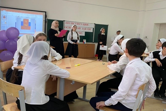 07.12.202307.12.2023г среди учащихся 8-х классов проведена викторина «Что ты знаешь о Конституции РФ?» (Ибрагимова Л.К.). Учащиеся показали высокий уровень правовых знаний, что означает то, что они достойные граждане своей страны. В ходе мероприятия обсуждалось современное толкование российских символов, вопросы важнейших конституционных положений, определяющих права и обязанности граждан Российской Федерации. Было сказано и о том, что посягательство на государственные символы во всех странах мира воспринимается как знак неуважения и враждебности к стране и карается законом. По окончании мероприятия была продемонстрирована презентация «Главный закон страны», из которой школьники узнали об основных правах и обязанностях граждан РФ.