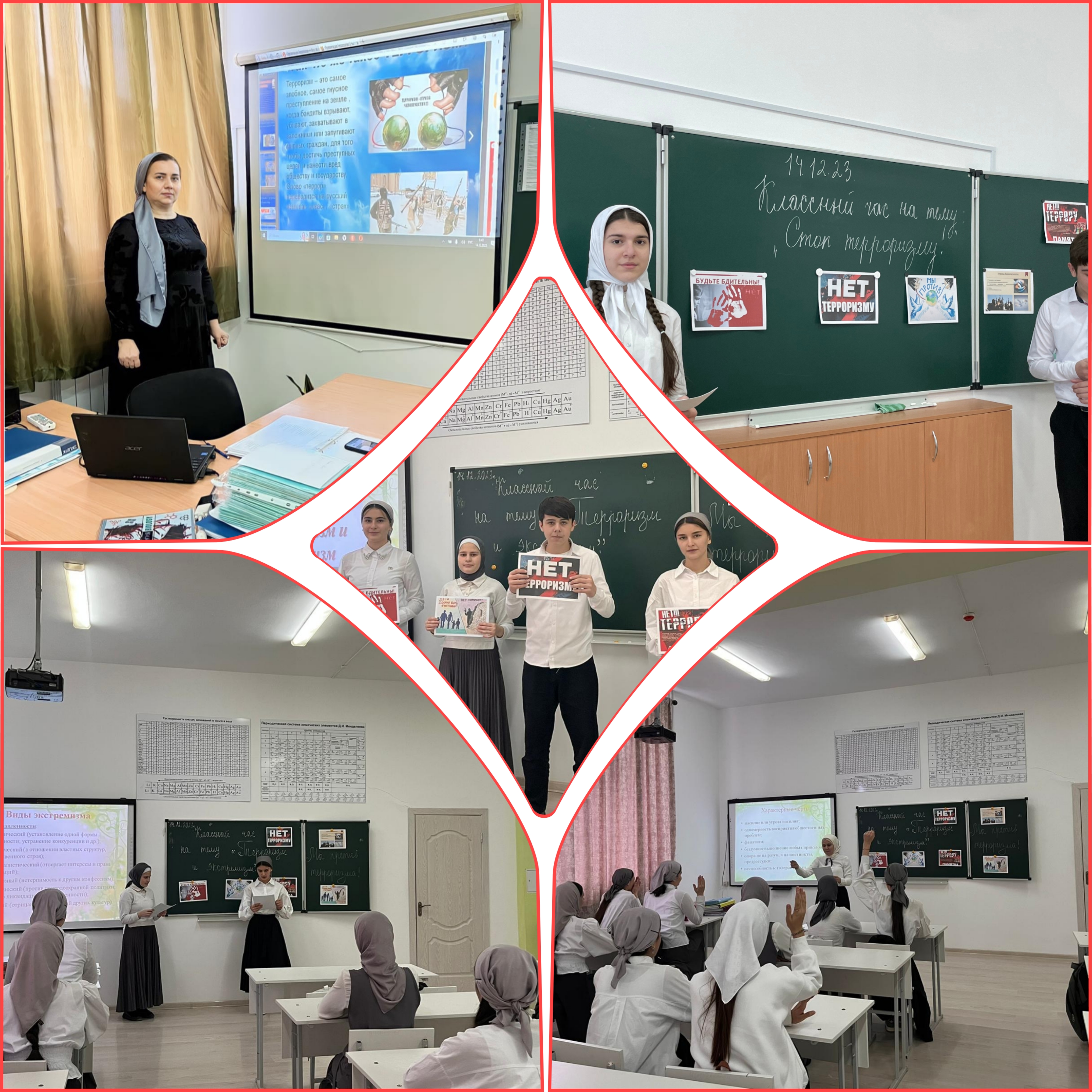 18.12.2023Терроризм и экстремизм - это исключительно большая опасность, способная расшатать любое, даже самое стабильное и благополучное, общество. С целью недопущения вовлечения молодёжи в экстремистскую и террористическую деятельность с 14 по 15 декабря 2023 года в МБОУ «СОШ №2 с.Центора-Юрт» им. А-Х. Кадырова проведены профилактические беседы и классные часы на тему: «Терроризм – главная угроза человечества», «Мы говорим– «Нет» терроризму!», «Что такое терроризм?», «Узнай, как защитить себя».
