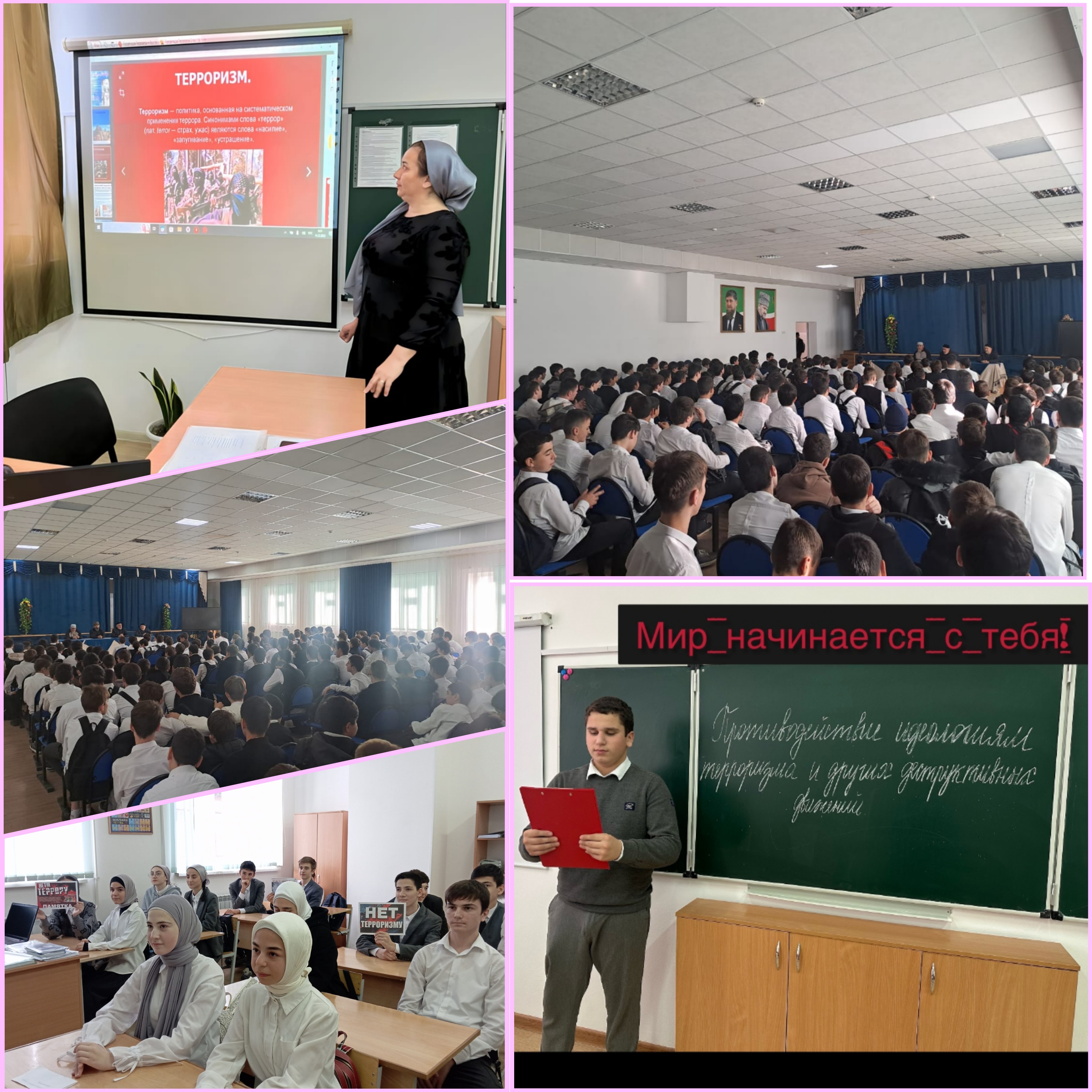 Имам с.Центора-Юрт Алиев С.Х., рассказал учащимся о том, что экстремизм и терроризм многогранен в своих формах, маскируется и прикрывается различными идеологическими и политическими доктринами, в том числе религий. Экстремизм и терроризм наносят непоправимый вред устоявшимся общественным ценностям человечества, оказывают существенное негативное влияние на «чувство защищённости» человека.