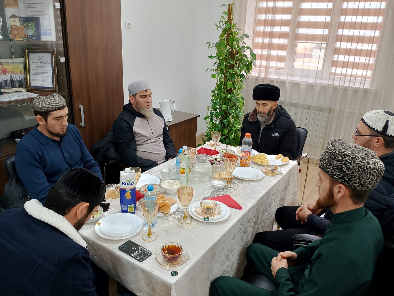 22.12.2023Педагог ДНВ Белалов М.О. вместе со старейшинами села прочитали «Мовлид», приуроченный Дню памяти и почитания Устаза Кунта-Хаджи Кишиева (да будет возвышена его святость).