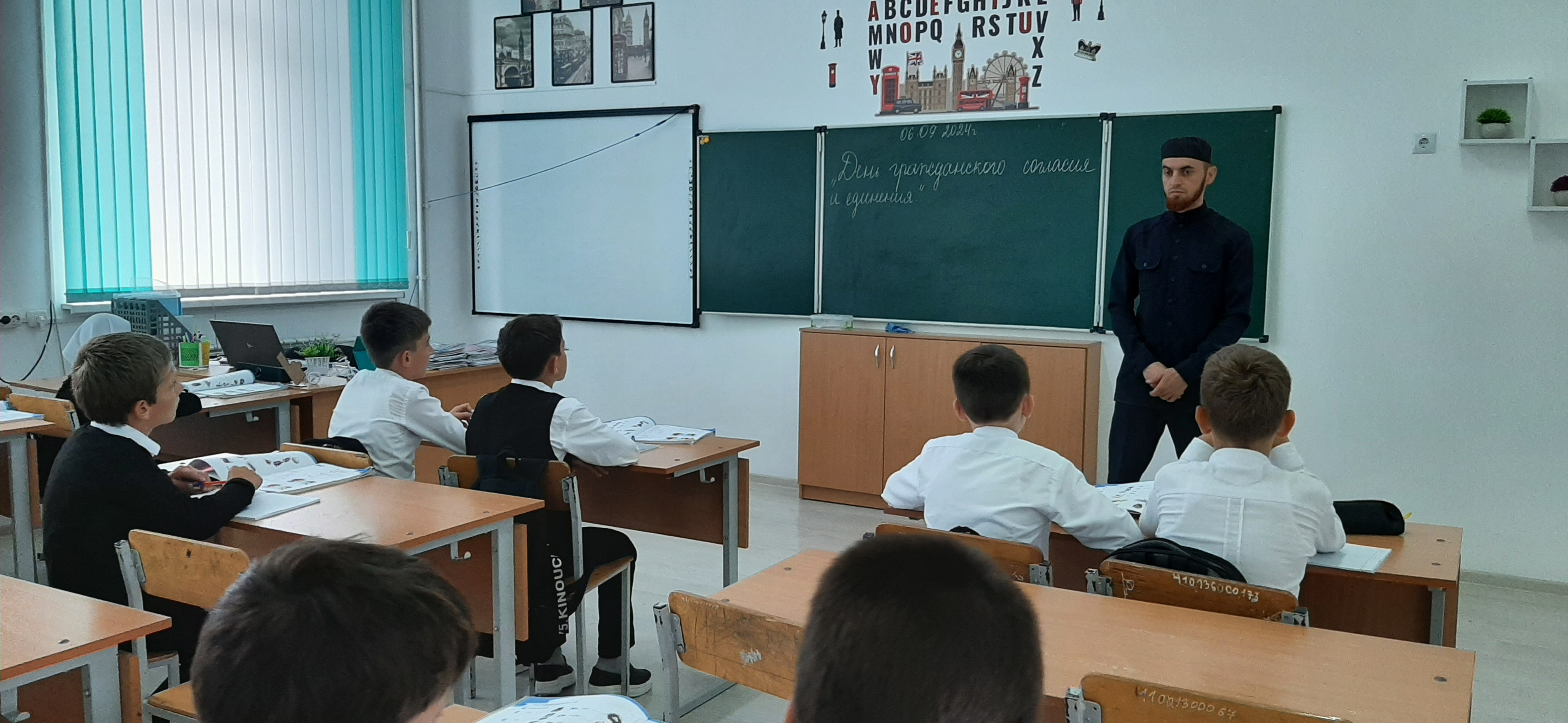 06.09.2024С целью формирования гражданско-патриотических и духовно-нравственных качеств личности обучающихся, основанных на государственных и общечеловеческих ценностях классные руководители совместно с педагогом-организатором по ДНВ Белалом М.О провели классные часы, посвященные Дню Республики (6 сентября-День согласия и единения"