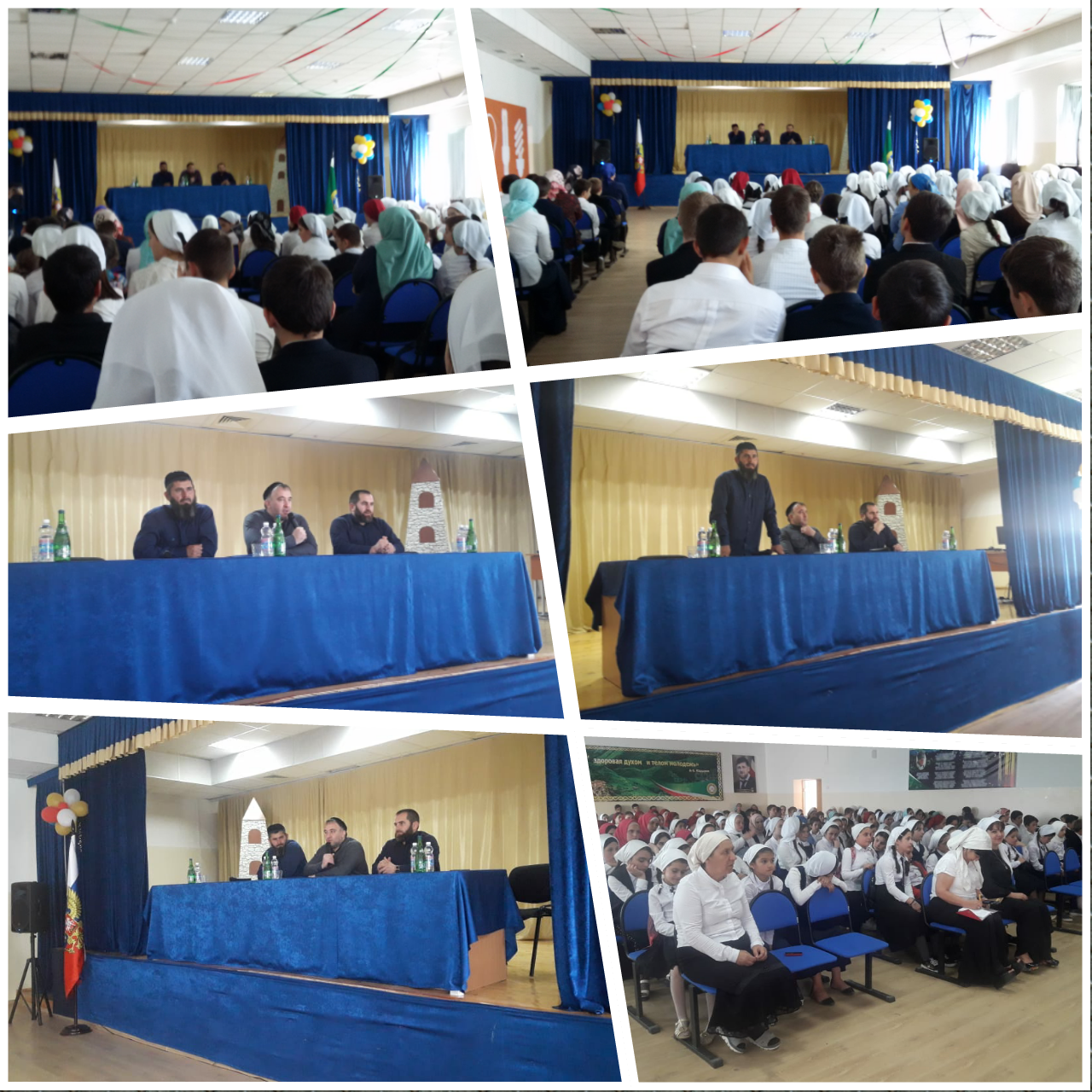 20.09.2018С целью ознакомления учащихся с высокочтимым, запретным месяцем Мухаррам и пользой соблюдения поста в День Ашура, в МБОУ «СОШ №2 с.Центора-Юрт» им.А-Х. Кадырова помощник Главы Чеченской Республики Адам Джаватханов и имам села Центора-Юрт Алиев С.Х. 20 сентября 2018 года, среди учащихся 5-11 классов провели беседу на тему: «Месяц Мухаррам. День Ашура». В начале беседы они поздравили всех присутствующих с наступившим 1440 годом по мусульманскому календарю. Гости рассказали, что День Ашура имеет глубокий нравственный смысл, побуждает ответственнее относиться к своим делам и поступкам.